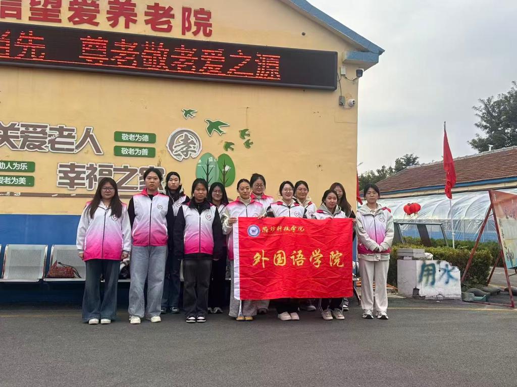 为弘扬中华民族尊老敬老的传统美德,搭建青年群体与老年群体的情感沟通桥梁,10月 23日,天游线路测速登录中心梦马青年志愿者服务队前往寿光市信望爱养老院,开展“情暖夕阳红,青春伴我行”主题志愿服务活动。此次活动不仅为养老院的老人们送去关爱与温暖,更助力大学生在实践中深化社会责任认知,以实际行动践行“外语 +”一站式学生社区综合育人模式,展现新时代青年的温情与担当。